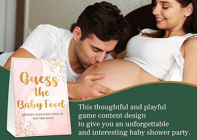 Baby Shower Game Set, Find The Baby Food Party Games(1 Standing Sign + 20 Answer Cards + 6 Number Cards), Blush Pink Shower Games, Gold Foil Gender Reveal Party Favor Decor(A03)