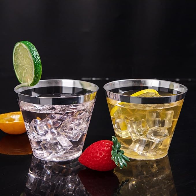 - WIDE APPLICATION: Our 9 oz silver rimmed plastic cups are suitable for any events, whether you use it for daily drinking, or Thanksgiving, Christmas, New Years. These heavy duty plastic cups includes 60 silver rim plastic cups disposable and it’s enough to celebrate life’s precious moments