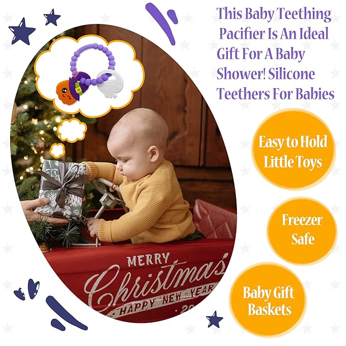 - The raised texture allows babies to enjoy the fun of chewing.The perfect chewing texture meets the baby's needs for pain relief and soft gums.Easy to clean, dishwasher and freezer safe