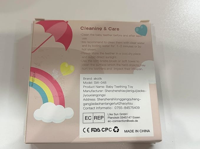 - WARM NOTE: Before putting this baby teether into boiled water, please remember to take out of the wooden ring. The wooden ring can be cleaned by flowing water or wet clean towel