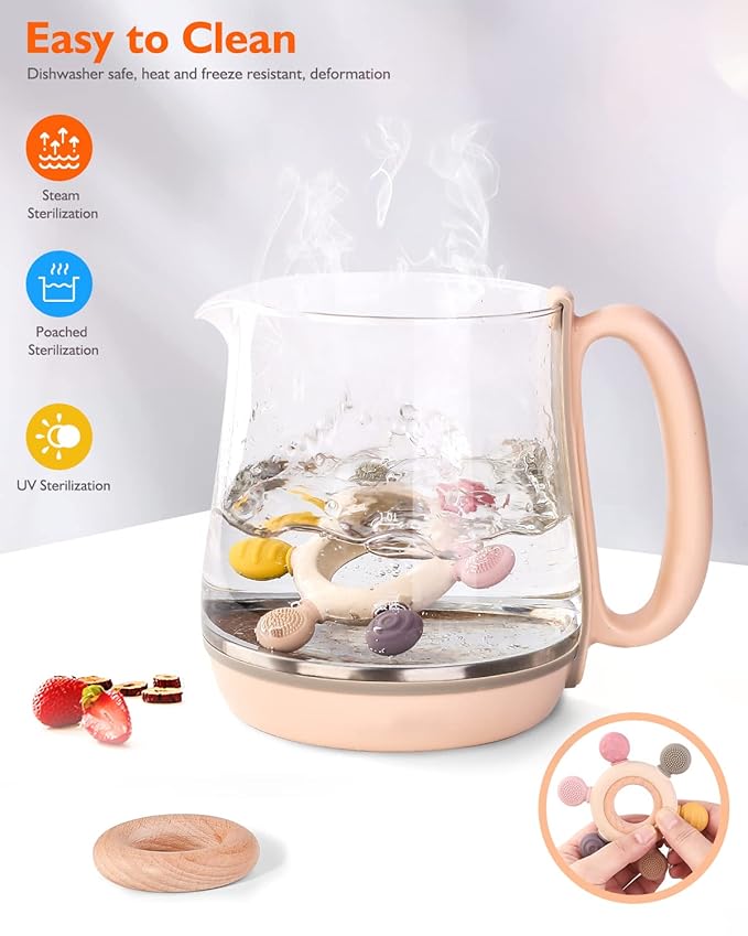- EASY TO CLEAN: Our teething toys are easy to clean, simply wash with mild soapy water or boil to sterilize. Teething toys can also be stored in the fridge for extra cooling.(Note: the wooden ring can't be boiled, please remove it)