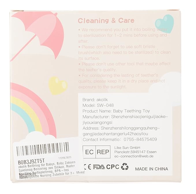 - WARM NOTE: Before putting this baby teether into boiled water, please remember to take out of the wooden ring. The wooden ring can be cleaned by flowing water or wet clean towel