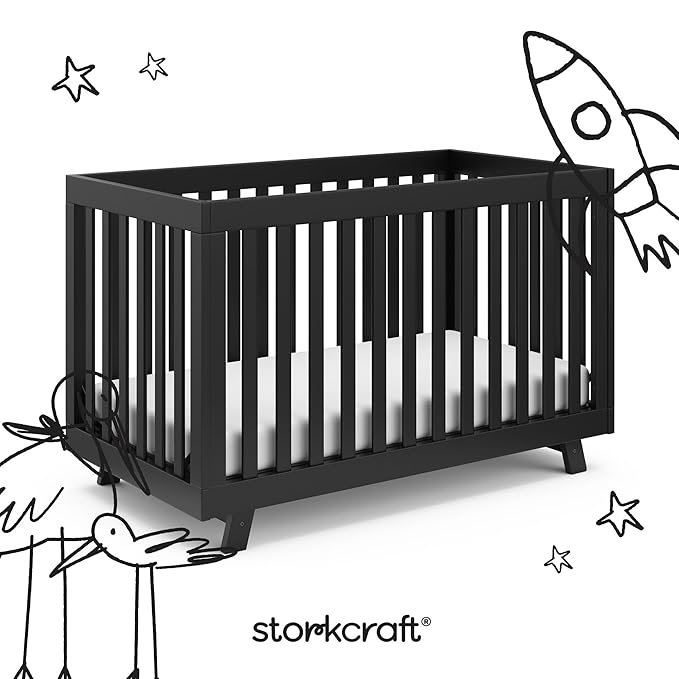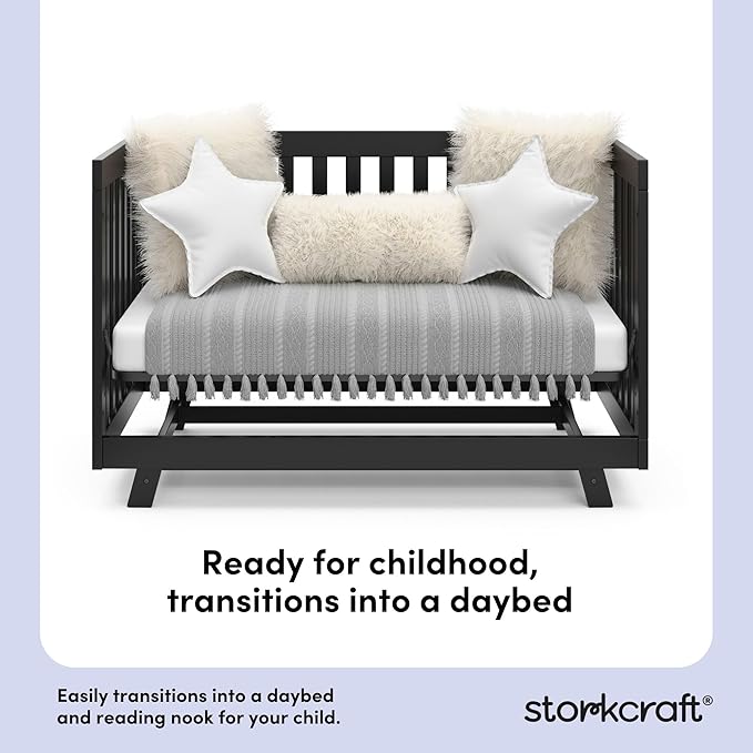 Storkcraft Beckett Convertible Crib (Black) – Converts from Baby Crib to Toddler Bed and Daybed, Fits Standard Full-Size Crib Mattress, Adjustable Mattress Support Base