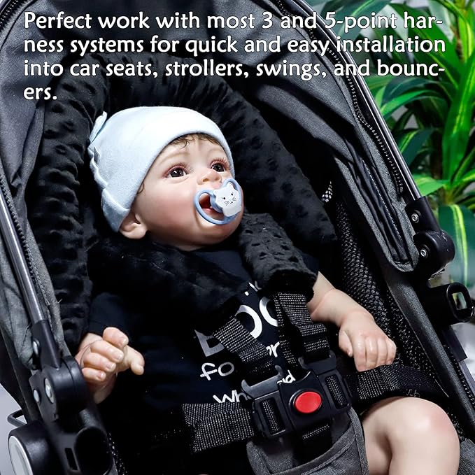 - BABY HEAD SUPPORT AND STRAP COVER SET: This car seat head support for newborn is designed for babies as they grow and is also perfect for baby carseat,strollers, and bouncer seats. Perfect worked with both 3 point and 5 point harness systems in most baby car seats