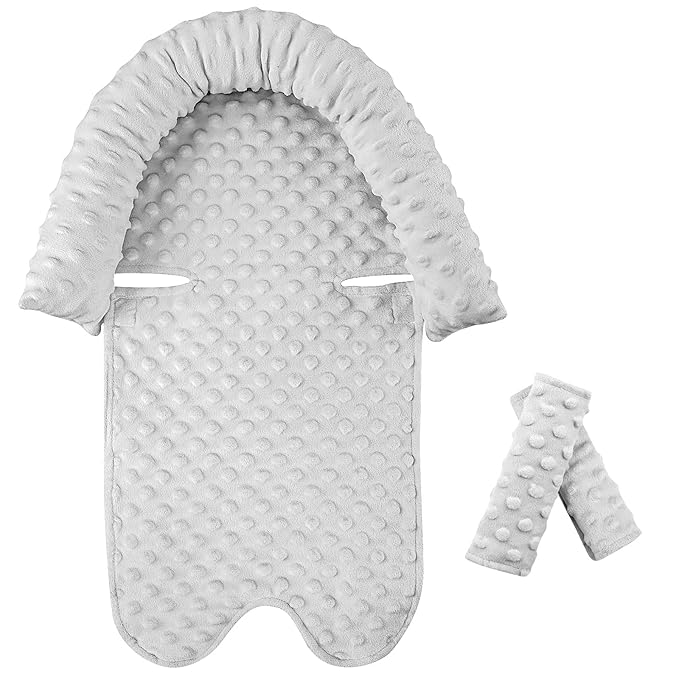 Car Seat Head Support Infant Baby Carseat Head Support & Strap Covers for Newborns Ultra Soft Minky Dotted Fabric Infant Car Seat Insert Perfect for Baby Carseats, Strollers, and Bouncers