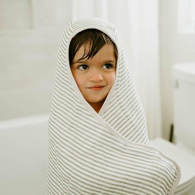 Little Unicorn Premium Hooded Bath Towel| Absorbent Cotton & Terry Blend | Larger Size, 1-6 Years (Grey Stripe)