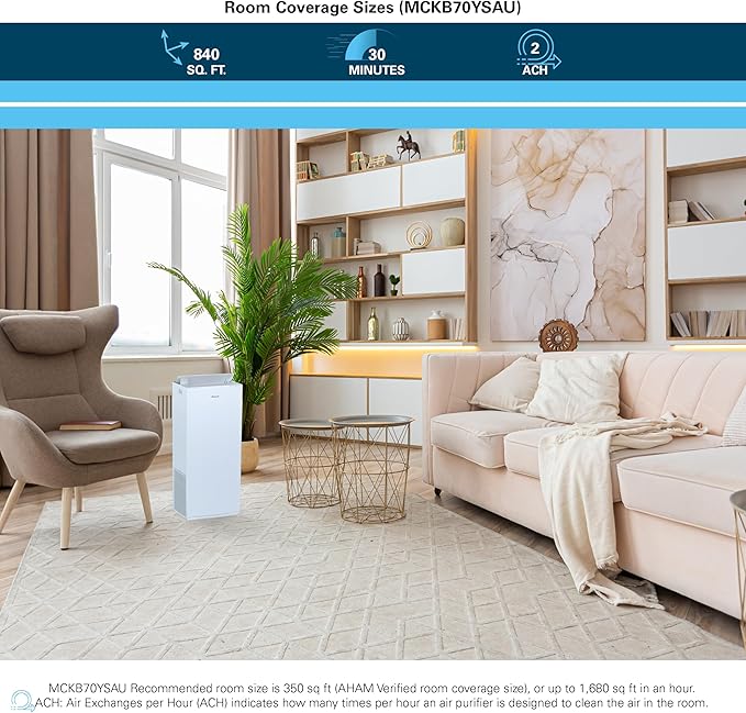 - UVC LED LIGHT TECHNOLOGY: UVC LED light technology aids in further increasing overall air cleanliness by inactivating bacteria and viruses as small as 0.1 microns that are trapped in the purification system's HEPA filter. Keep clean and healthy air with the variety of internal filters utilized by the MCKB70YSAU.