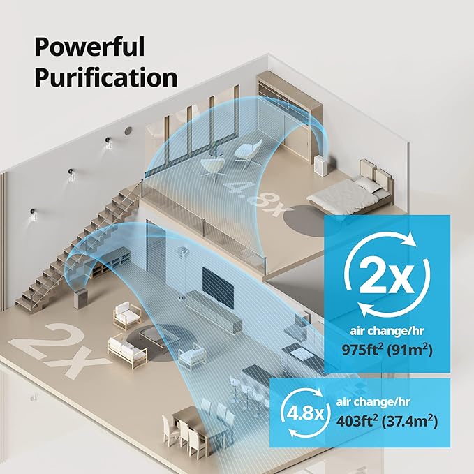 - [Auto Mode] Constantly monitoring the air quality the fan automatically adjustes to most effectively purifiy your space as needed providing a new level of clean in real time.