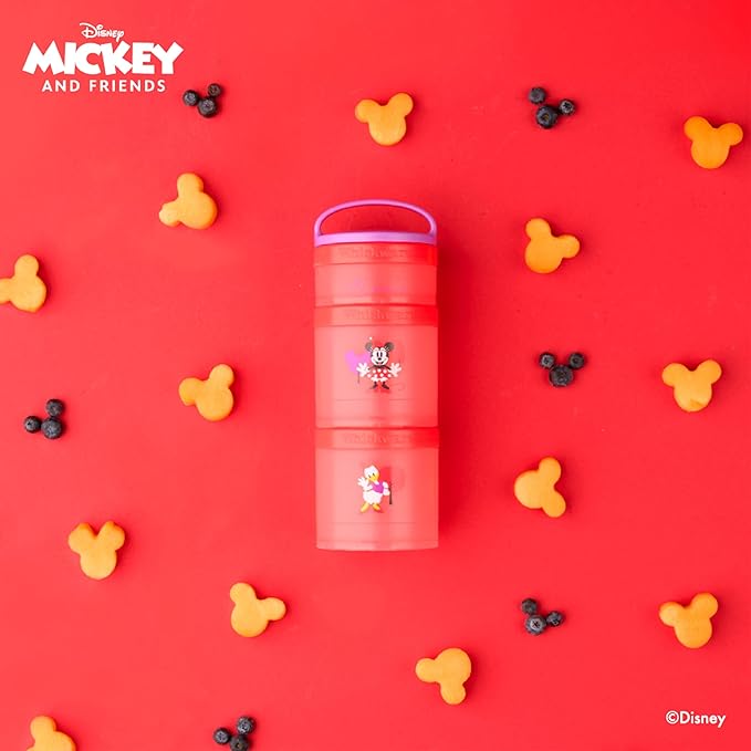 Whiskware Disney Stackable Snack Containers for Kids and Toddlers, 3 Stackable Snack Cups for School and Travel, Minnie and Daisy
