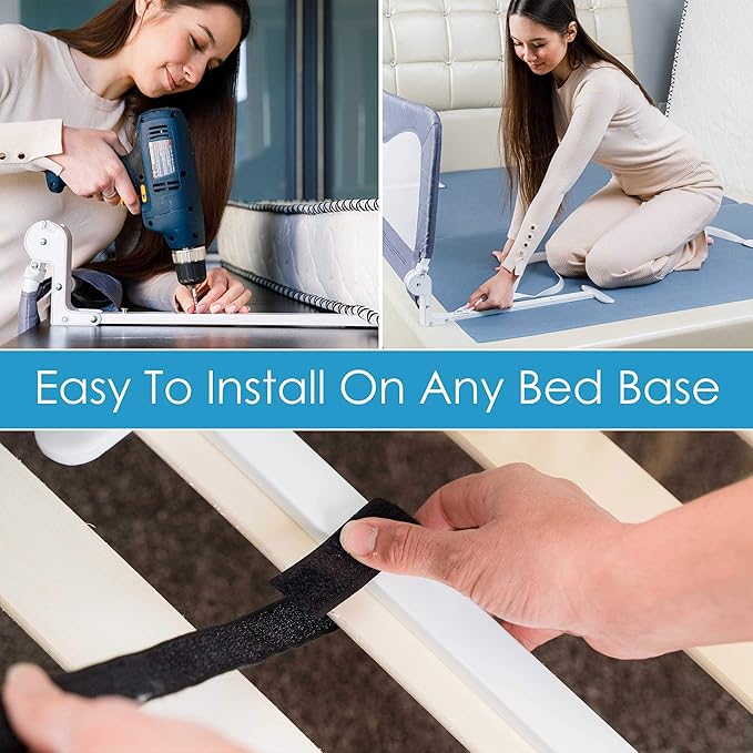 - ✅【Compatibility & Universal Fit for most bed types & sizes】: TotCraft Bed safety Rail Guard works with slatted beds, box springs or wooden base beds. Also suitable for Cribs, Queen beds, Double twins, king size beds, Single mattresses, Toddler beds, Tempurpedic beds, Bunk beds, full size beds, Twin beds, Double mattress, and Twin mattress.