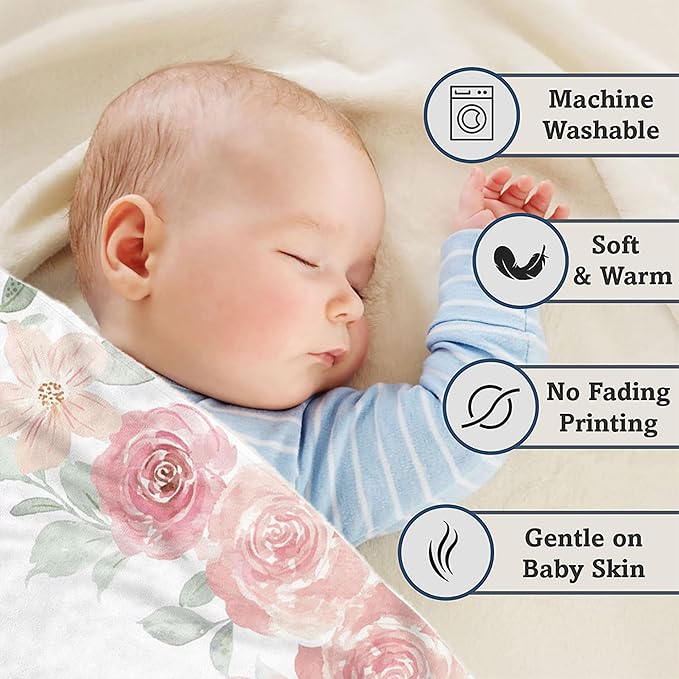 Arteaga Personalized Baby Blanket for Girls, Customized Floral Rose Blanket for Newborn, Super Soft Plush Fleece, 30''x40''