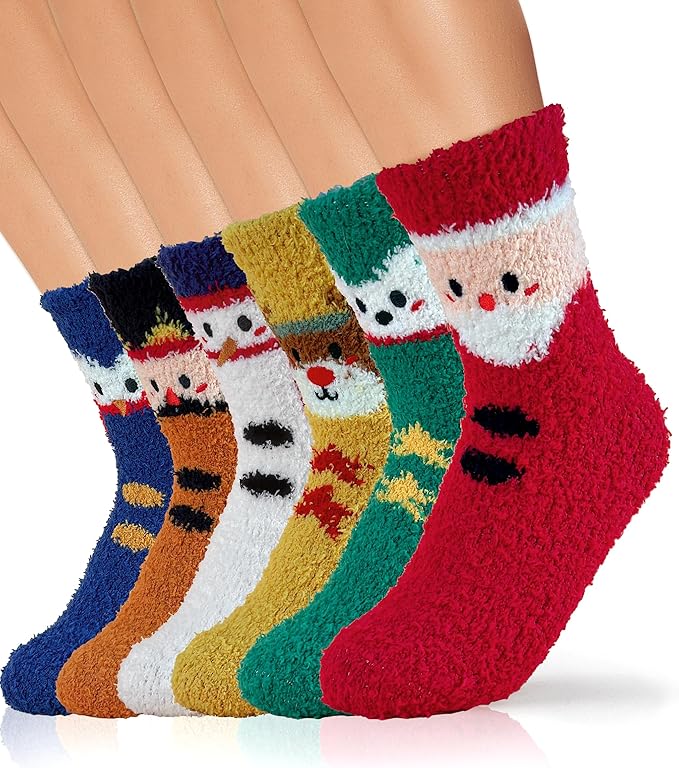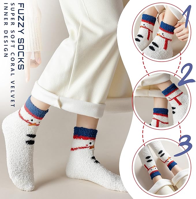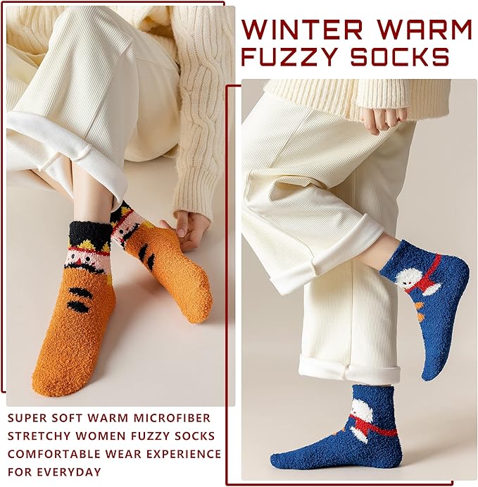 - Deck Feet with Cozy Cheer: These toasty, ultra-fuzzy Christmas socks boast a jolly Santa and a snowman design; perfect for filling stockings with festive flair; soft, cozy, and fuzzy for smiles with every step; ideal stocking stuffers