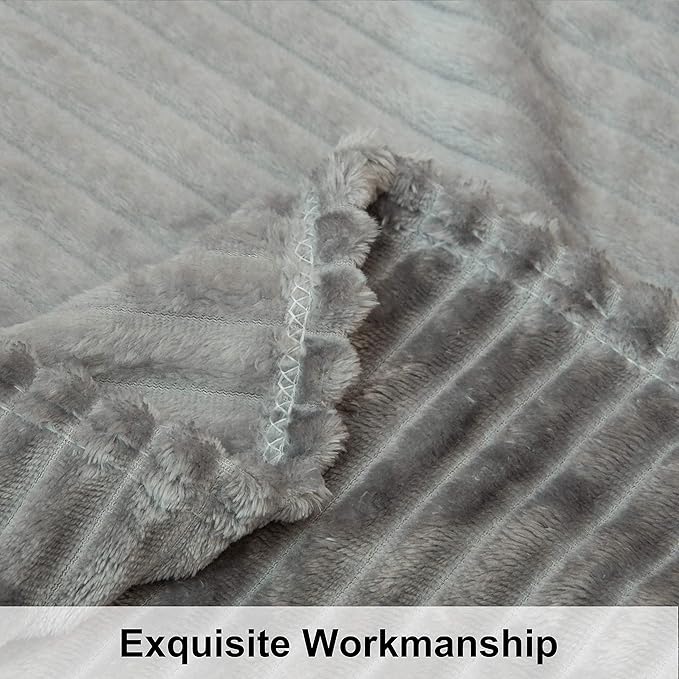 NTBAY Plush Flannel Oversized Baby Blanket, 50X60 Inches Soft and Warm Toddler Blanket with Striped Texture Nursery Bed Blanket for Stroller, Crib, Travel, Baby Gift, 50"x60", Grey