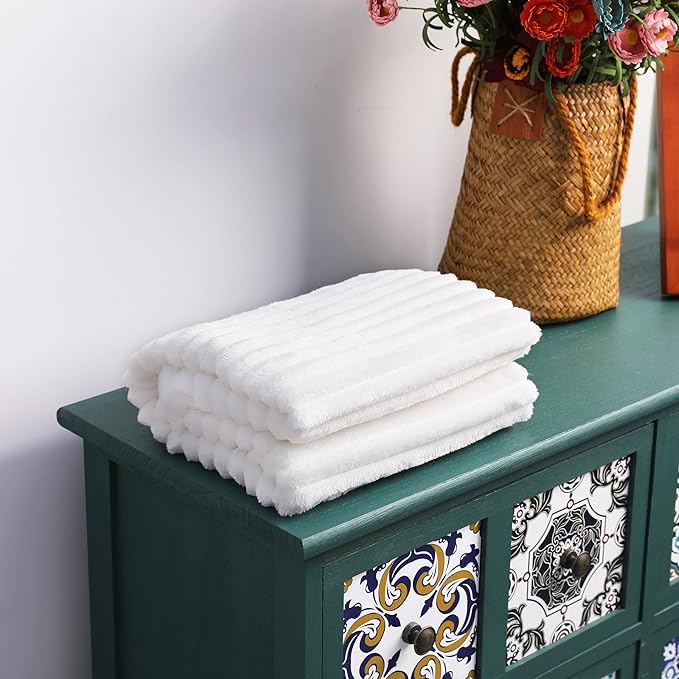 NTBAY Plush Flannel Baby Blanket, Soft and Warm Toddler Blanket with Striped Texture for Stroller, Crib, Travel, 30x40 Inches, White