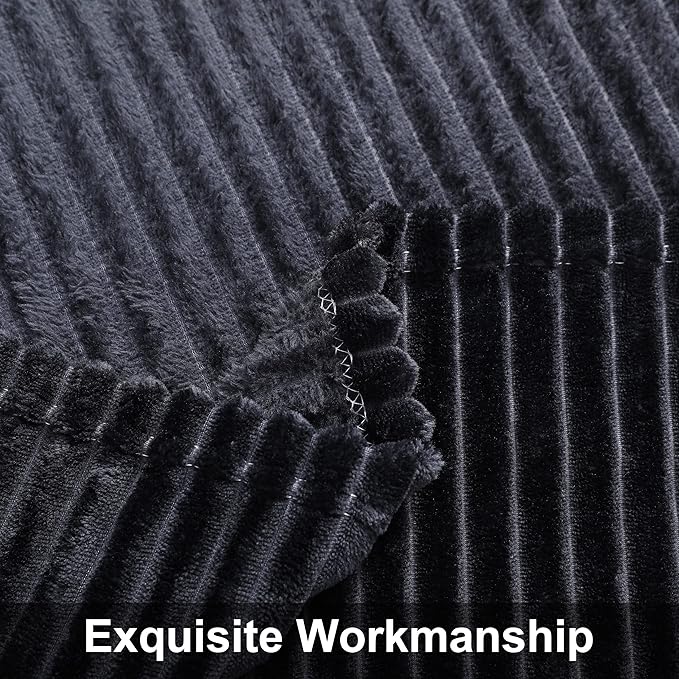 NTBAY Plush Flannel Oversized Baby Blanket, 50X60 Inches Soft and Warm Toddler Blanket with Striped Texture Nursery Bed Blanket for Stroller, Crib, Travel, Baby Gift, 50"x60", Black
