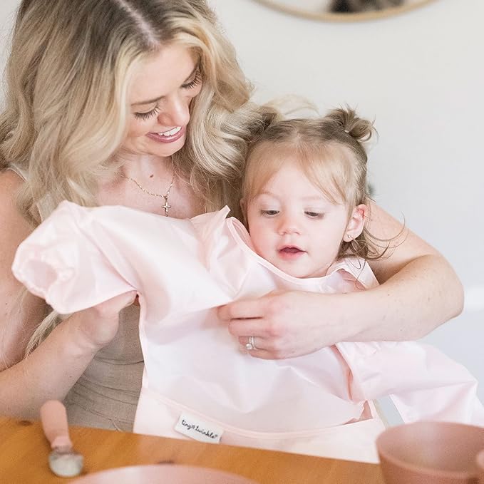 Tiny Twinkle Mess Proof Baby Bib,Waterproof Smock Baby Bib for Eating,Machine Washable Long Sleeve Bib,Baby Led Weaning,Toddler Bib,BLW Supplies(Rose, Large 2-4 Years)