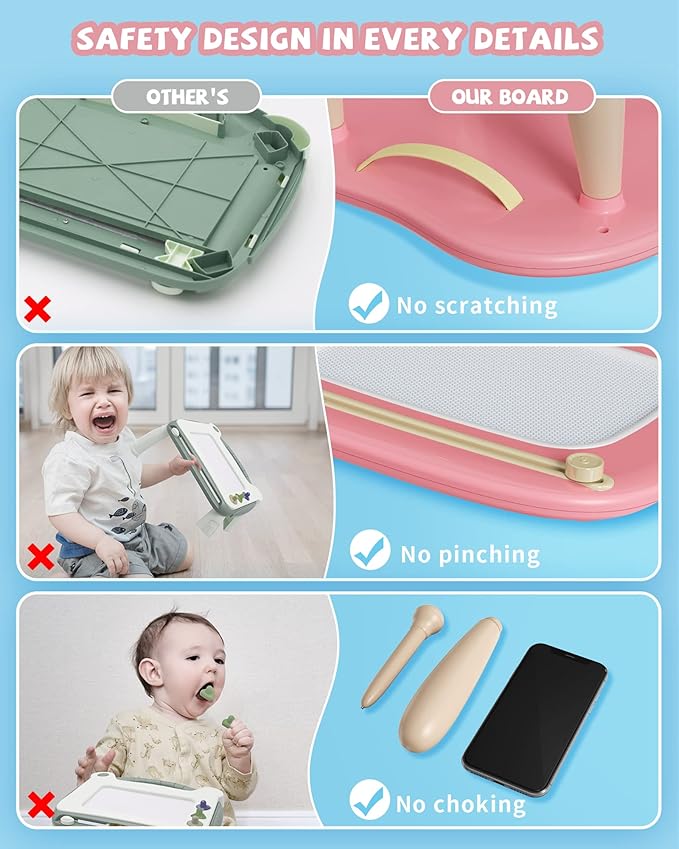 - [Stable Detachable Board Leg] It's a safe and perfect toddlers toy for girls and boys age 1-2 years old! The magnetic drawing board adopts a piano-shaped design which is easy to attract toddlers' attention. The upgraded magnetic writing board cylinder-shaped leg can be twisted easily and the drawing board legs are not falling off anymore. It's very safe for toddlers to drawing on it and have hours of fun!