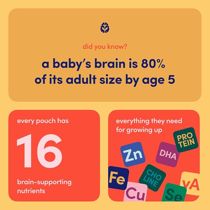 - BRAIN SUPPORTING NUTRIENTS - Cerebelly baby puree pouches are the only organic fruit and veggie pouch that delivers 16 brain-supporting nutrients that play a pivotal role in your child's cognitive development. With 35% of their daily value of Potassium, 25% daily value of Iron and 40% daily value of Vitamin E, these pouches pack a punch!