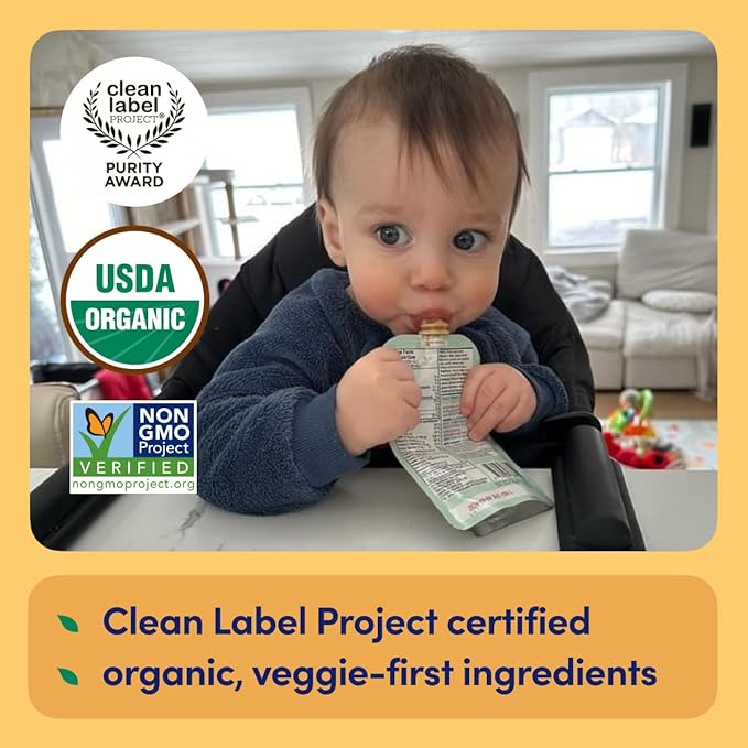 - CLEAN LABEL PURITY AWARD - Our baby food pouches have been rigorously tested for harmful levels of heavy metals and toxins. We are commited to helping you feed your little one only the highest quality ingredients in our toddler purees and baby snacks. Other brands' toddler snacks and kids meals may fall short of testing, but we’re the first shelf-stable baby food to receive the Clean Label Project Purity Award. We are raising the bar for organic baby food!