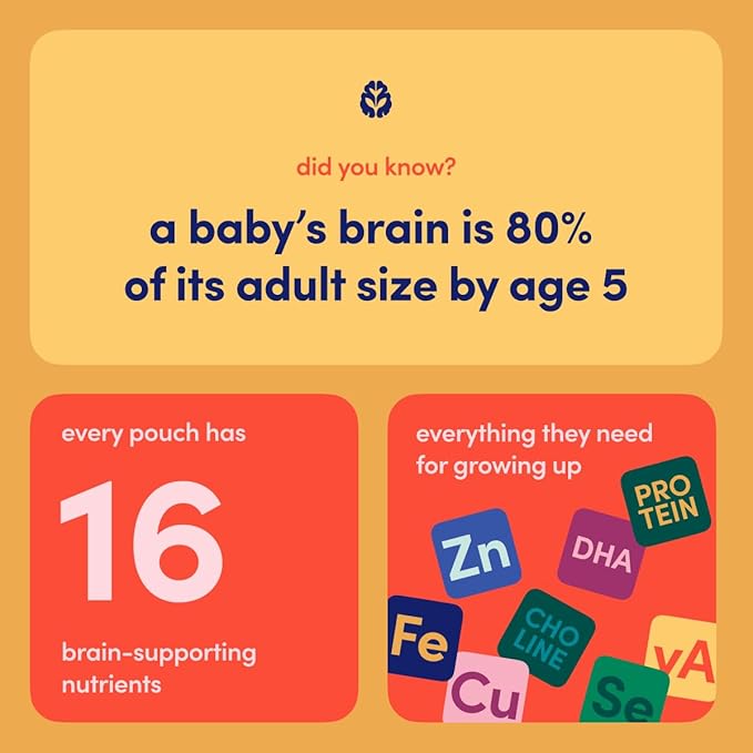 - BRAIN SUPPORTING NUTRIENTS - Cerebelly baby puree pouches are the only organic fruit and veggie pouch that delivers 16 brain-supporting nutrients that play a pivotal role in your child's cognitive development. With 4g of plant-based protein, 25% daily value of Iron and 100% daily value of Vitamin A these pouches pack a punch!