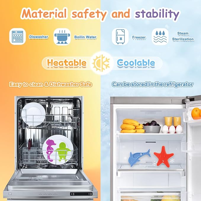 - SAFE MATERIAL AND EASY TO CLEAN - 100% food grade silicone material, no plastic or chemical smell, non-toxic, BPA-free. Can be hand washed or dishwasher safe and freeze safe. Clean the silicone teether with steam or boiling water before use, dry it after use and store it for next use