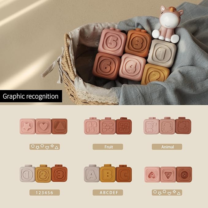 - 【Unique Building Blocks】The building block set has 6 building blocks and a pink horse. The lovely pastel color cultivate baby's color perception ability, and the side of the building block has a cute embossed design to help the baby develop the sense of touch
