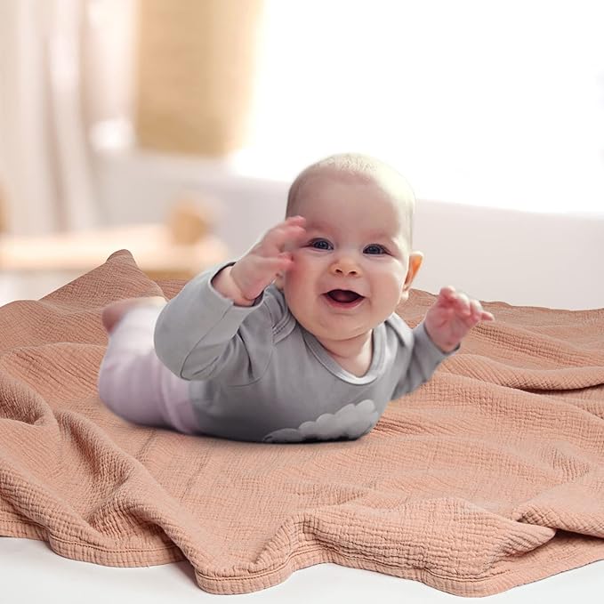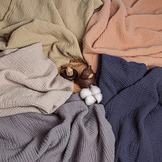 - EASY TO CARE: Our muslin baby blanket is machine washable and tumbles dry, saving you time and giving you more time to play with your baby. The texture is more evident and beautiful after cleaning. Please note that the tolerance for muslin cotton material is approximately +-1inch