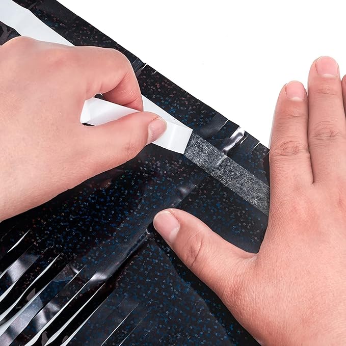 - The top of all wall streamers party curtains is covered with double-sided adhesive tape, eliminating the need for push pins or tacks that could damage walls. Perfectly stay in place for the duration of indoor or outdoor party celebration.