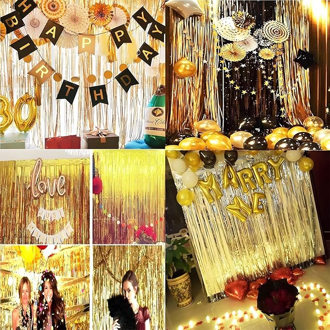- The beautiful tinsel foil fringe curtain are good for adding sparkle atmosphere as decorations for parties, like Movie-theme Party, Homecoming Party, Christmas Party, 50th Birthdays Party, 60th Birthdays Decorations, 70th birthdays decor , men 30th birthdays, 40th anniversary decorations, heme Party, Halloweens Party, New Years Eve Party, Bachelorette Party, Engagement Party, Bridal Shower Party, Graduates Theme Party and more. They are also suitable for ceremony, stage backdrop, dance backdrop etc