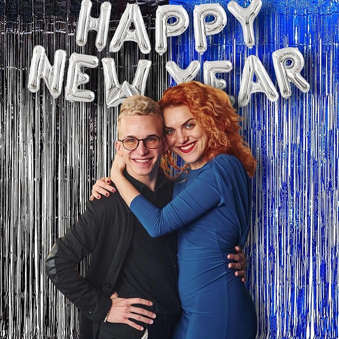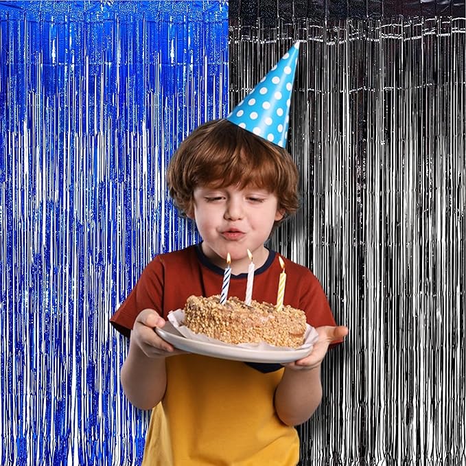 Foil Fringe Curtain Party Decorations - Black Blue Metallic Tinsel Photo Booth Backdrop Party Steamers Curtains for Birthdays Christmas New Years Homecoming Decoration