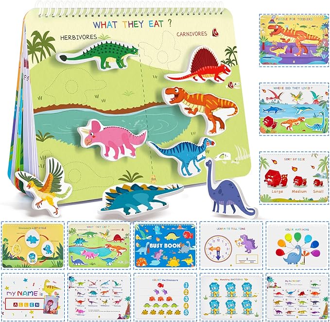 Freebear Busy Book for Toddlers Preschool Learning Activities Resources Autism Sensory Montessori Toys for 2-3 Year Old,Travel Toys, Gifts for Girls and Boys 4 5 6 Years (Dinosaur World)