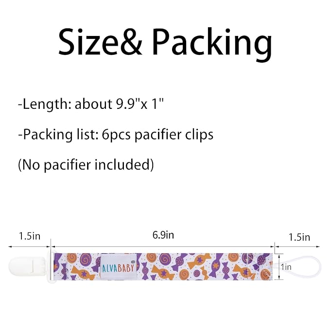 - Material-ALVABABY baby pacifier leash are made of polyester fabric,plastic clip,nylon rope.Paci clip strap is a universal pacifier leash designed with a loop to be compatible with all types of pacifiers,suitable for babies of all ages that newborn,infants,toddler.Pacifier holder clip helps a crawling baby keep their pacifier from dragging on the dirty ground.