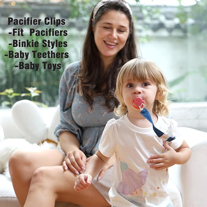 - Multifunctional Usage: pacifier leashes are usually used for any pacifiers,soothies,burp cloths,teether toys,teething rings,Nuks,MAMs,baby blankets,baby drool bibs,strollers,play gyms and car seats.It is an universal pacifier clip and fits to your favorite brand of pacifier and soother.Pacifier clip holder would be hold on the clothes firmly without damaging baby's clothes.Never lose or drop the pacifier.