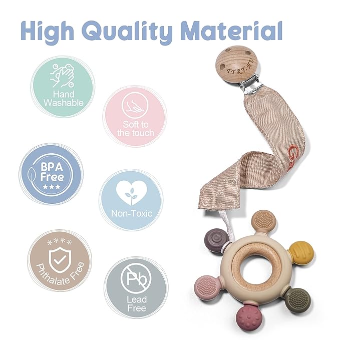 - Soft and Safety: The soother ribbon pacifier leash are made of soft webbing and the high quality material is washable; The clip head has three holes to avoid choking, making it safer for babies; Wooden stainless steel clip is lighter than silicone