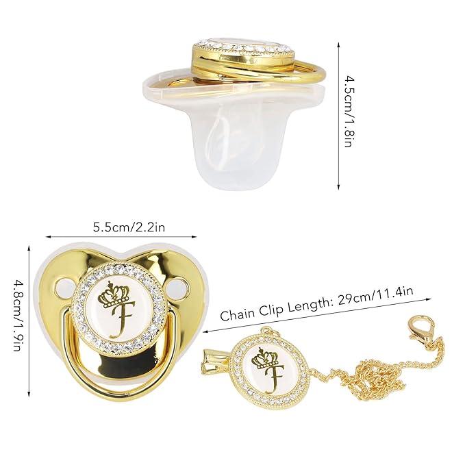 - Comfort-First Ergonomic Design---The golden letter pacifier is crafted with a mellow design that promotes comfort and minimizes friction against your baby's nose. It provides a soothing experience while ensuring safety during use. Designed for infants aged 6 to 18 months, this pacifier helps calm fussy babies by providing a reliable source of comfort, making it a necessity for any thoughtful parent’s collection of baby essentials.