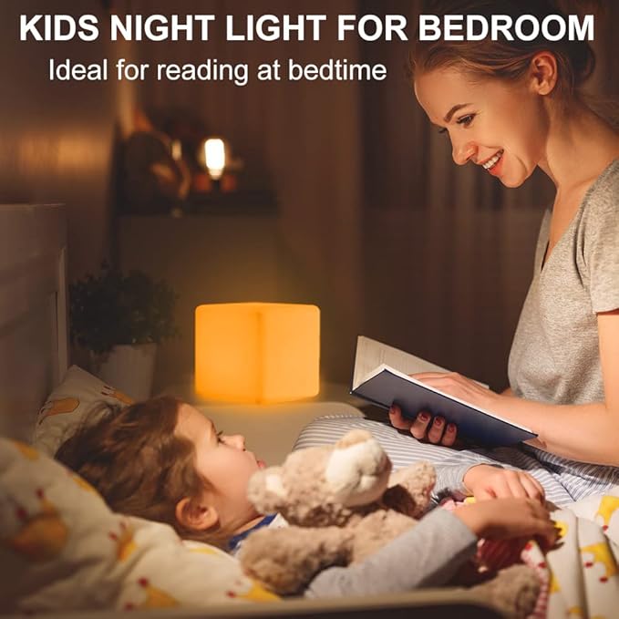 - š§” ćFun LED Cube Night Lightć- This versatile 8-inch glowing cube is the perfect outdoor/indoor light up option for all your decorating needs. It is a nursery kid stool or a bedside lamp for kid/adult, dimmable eye-caring design makes kids feel safer & more comfortable. It is also ideal for bedroom garden patios path lawn pool deck wedding party and bar decor to create atmosphere, add character & bring fun.