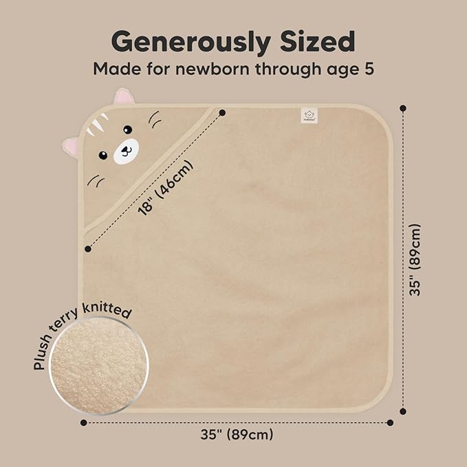 - Large and Durable Hooded Baby Bath Towels β Measuring 35" x 35", KeaBabies Hooded Baby Towels for newborn are built to be long-lasting even with repeated washes. The soft baby hooded towel can be use as your newborn grows into a toddler and up to age 5.