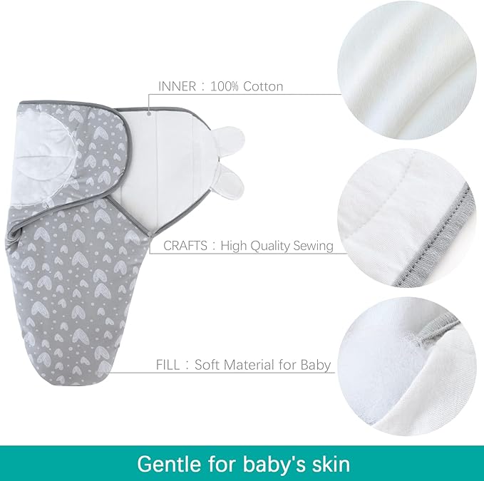 - ♥ Ultra soft and warm: Our baby swaddle 0-3 month is made of cotton inner and poly cluster fiber filling. The lightweight fabric is amazingly soft, breathable and stretchy to keep your newborn perfectly wrapped, cozy, and sleeping peacefully. Our quilted baby swaddle is thicker than some traditional swaddles which can keep little ones warmer in cold winter.
