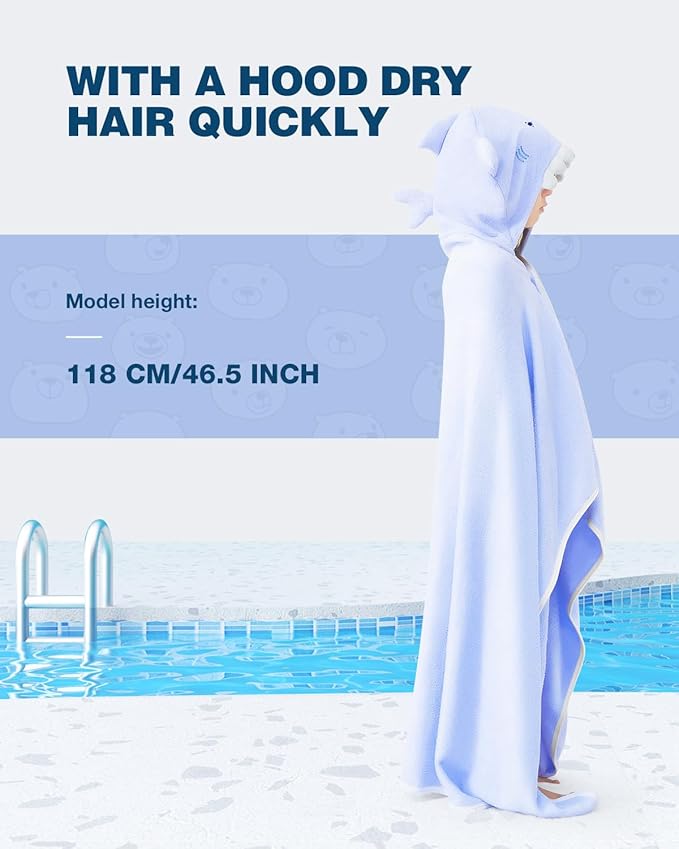 - 【Kid-Friendly Design】Hooded towels with snaps for kids -- Two snaps for easy on/off, ideal for active kids. Hooded design dries both body and hair in one go. Hanging loop for convenient storage and ventilation.