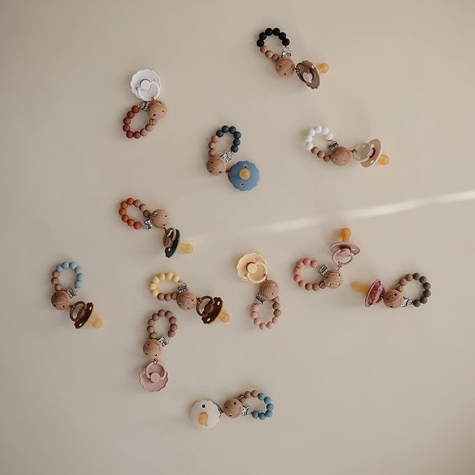 - Mushie Pacifier Clips are made with quality and care so you can have piece of mind while your little one is wearing our clips.