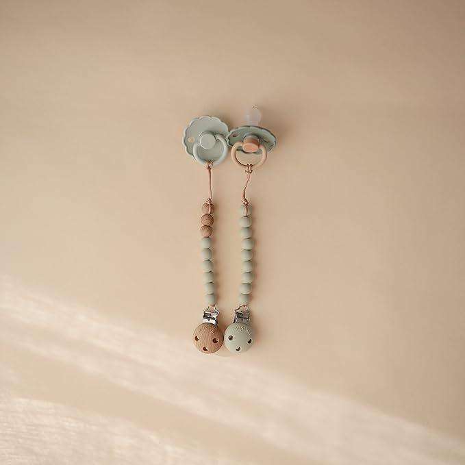 - Mushie Pacifier Clips are made with quality and care so you can have piece of mind while your little one is wearing our clips.