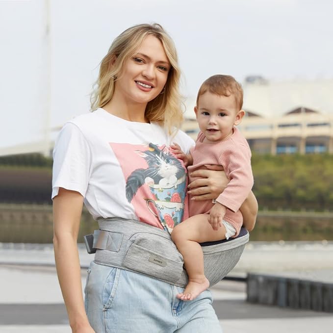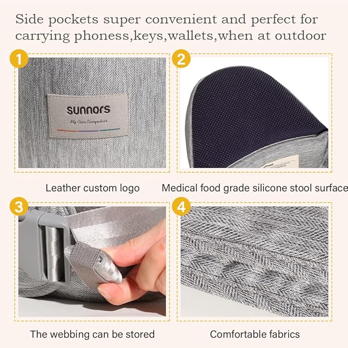 - 💪Sunnors Hip Baby Carrier: ergonomic baby carrier that sits right above your hip, Relieve parents' back pressure in all baby carries positions,The padded Abdominal Pad Designs provide extra safety for the baby and most comfort for parents.Fits 25.5-47inch waist,safety-certified design ideal for babies between 8-44lbs.