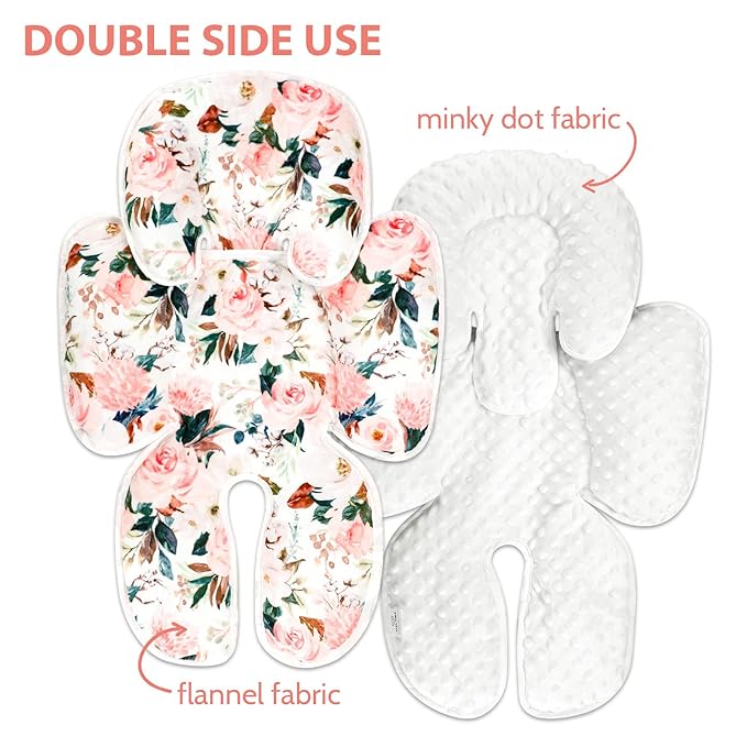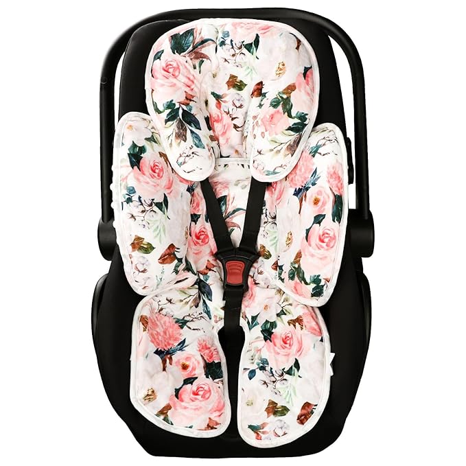 - As a Gift: Our newborn car seat insert is great for baby showers and new moms, it also can be used with our pink flower them baby car seat cover, and Minky baby blanket. It will make your baby different and unique.