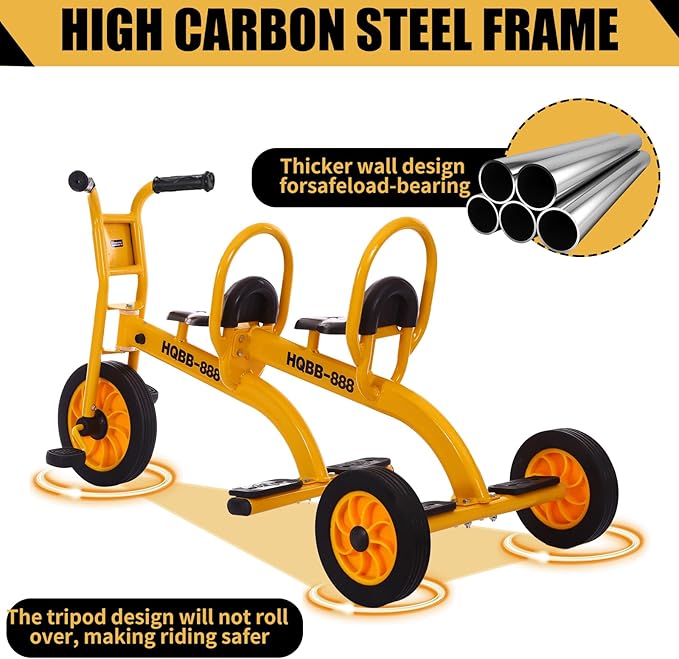 - 【STURDY DURABLE 】 Daycare kids tandem trike body features a sturdy high carbon steel frame, that can hold up to 200 lbs each trike's steel frame has a red, powder-coated finish designed to resist rust,and more durable.