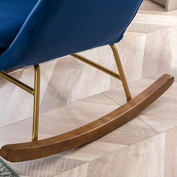 Velvet Rocking Accent Chair Upholstered Nursery Glider Rocker for Baby/Kids Comfy Nursing Lounge Side Chair for Living Room Bedroom, Blue
