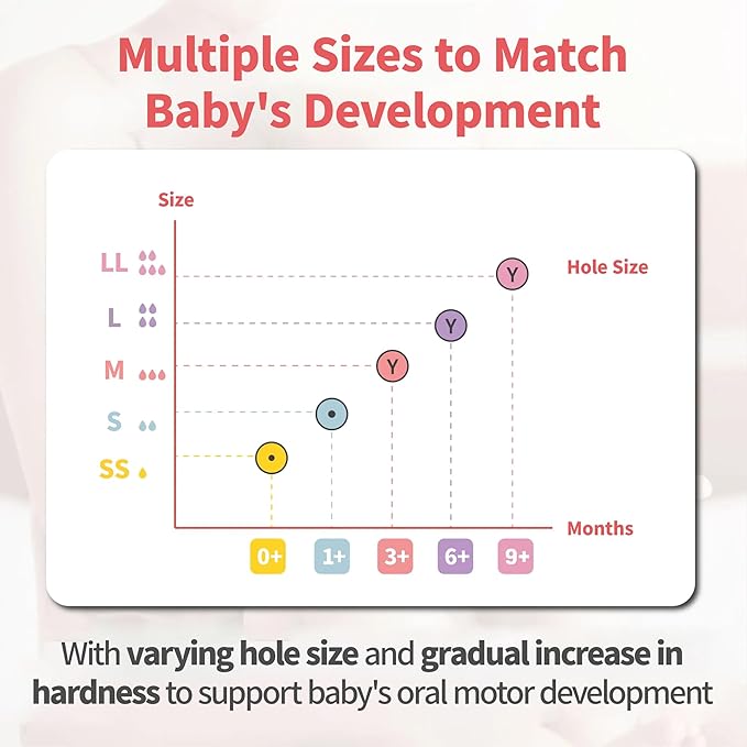 - SOFT AND FLEXIBLE SILICONE NIPPLE: For seamless switch between breast and bottle. It’s super soft and flexible to allow for natural and smooth tongue movement. Latch-on Line: The new design with latching curve of the nipple is guiding for baby’s appropriate latch, so as to achieve effective adsorption.