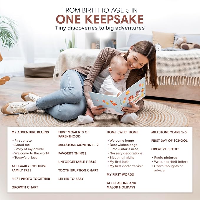 - ๐๐๐ฉ๐ญ๐ฎ๐ซ๐ ๐๐จ๐ฎ๐ซ ๐๐๐๐ฒโ๐ฌ ๐๐จ๐ฎ๐ซ๐ง๐๐ฒ: Our 88-page completely illustrated baby book keepsake, designed with guided prompts, ensures each precious memory is effortlessly and beautifully preserved forever. Celebrate every magical moment from birth till age 5.