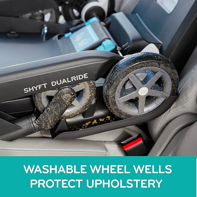 - LOVE THE EXTRAS! Includes a removable carryall storage bag to pack whatever your little beansprout needs for the day, wheels that nest securely in removable, washable wheel wells in base to keep dirt off your backseat, and a removable cup holder for you
