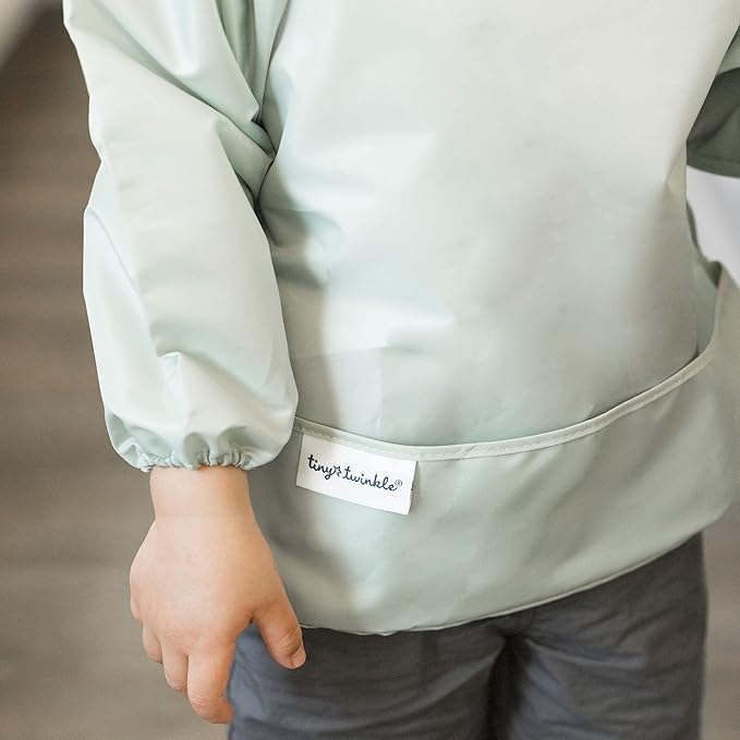 Tiny Twinkle Mess Proof Baby Bib,Waterproof Smock Baby Bib for Eating,Machine Washable Long Sleeve Bib,Baby Led Weaning,Toddler Bib (Sage Green, Large 2-4 Years)