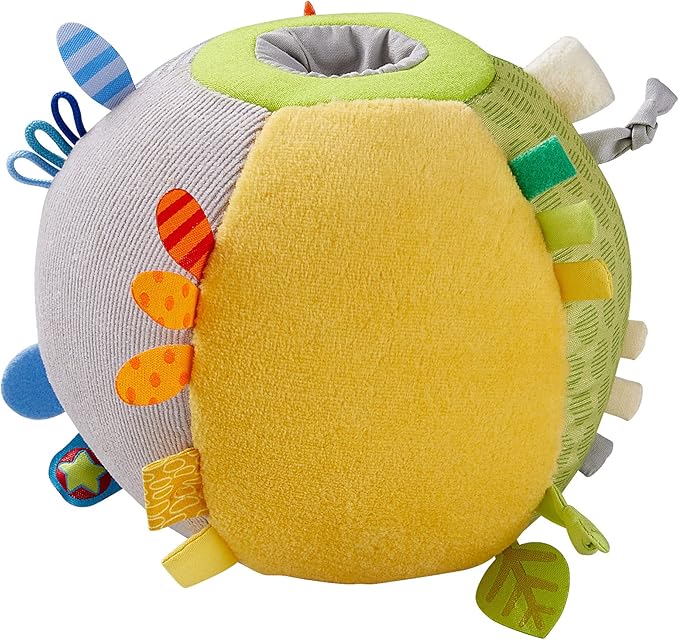 - SAFE BABY TOY WITH TEXTURES PERFECT FOR SENSORY PLAY: This plush baby sensory ball encourages exploration of fabrics & patterns. Babies can place hands inside to feel the soft, comforting filling.